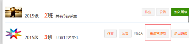 1.PC端登录后,单击正上方“班级”,找到要管理员的班级,单击“申请管理员”